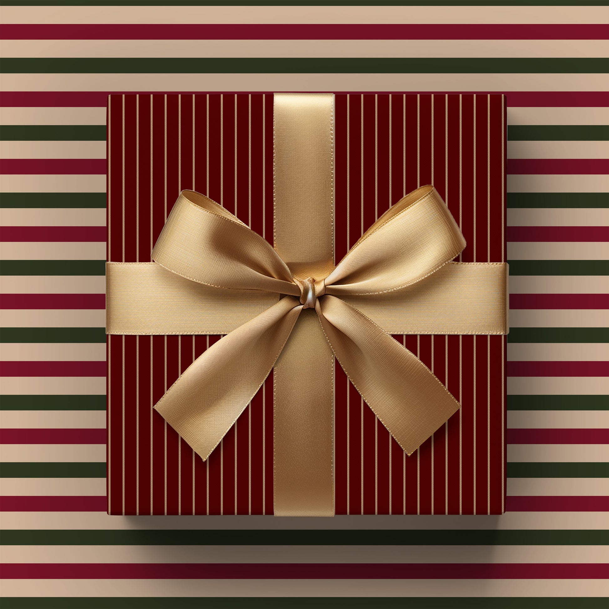 Wrap your gifts in timeless elegance with this stunning burgundy red and gold ticking stripe paper. The classic pattern brings a touch of sophistication to any present, whether you're celebrating birthdays, holidays, or special moments. Mix and match with coordinating papers to create a curated gift-giving experience that feels both refined and festive. Perfect for those who appreciate traditional style with a modern twist.