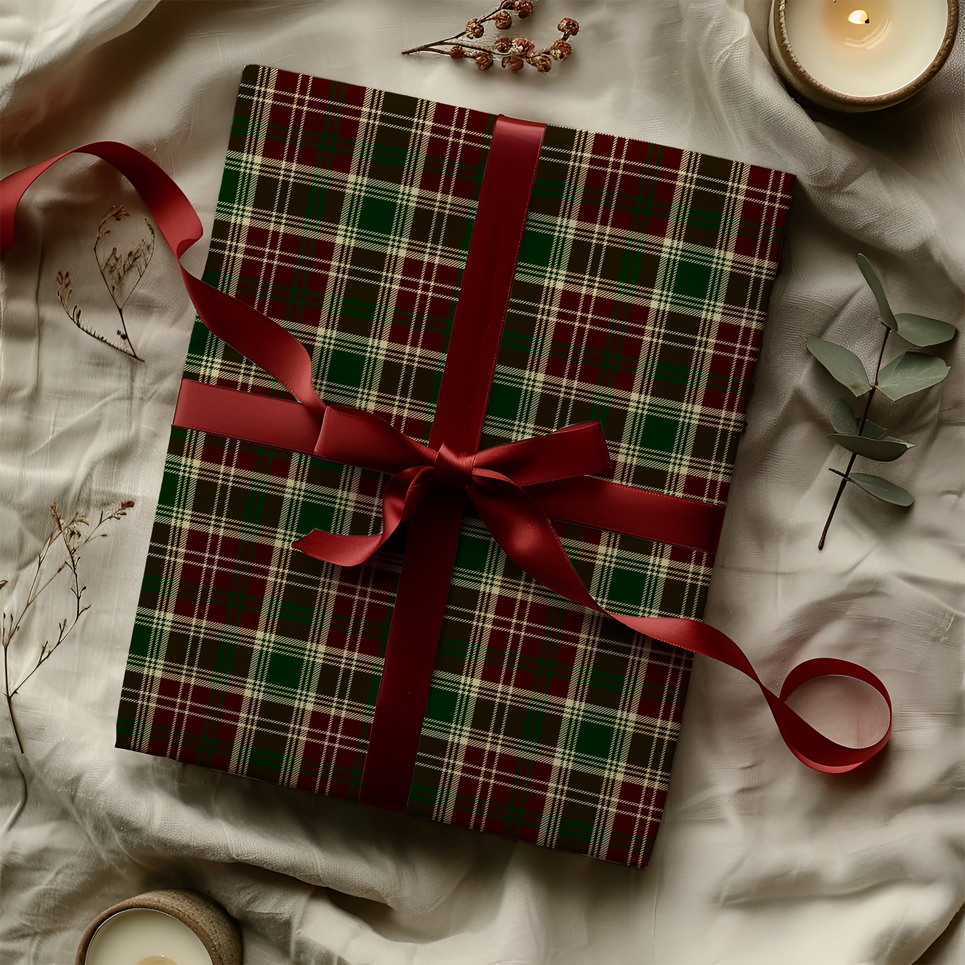 Wrap your gifts in festive flair with this stunning burgundy, green, and cream plaid wrapping paper! The classic color combo brings timeless holiday charm to every present, while its versatile design works beautifully for Christmas or any celebration year-round. Mix and match with coordinating papers to create a personalized gift-giving experience that's as thoughtful as what's inside. Perfect for adding that extra touch of elegance to your gift table!