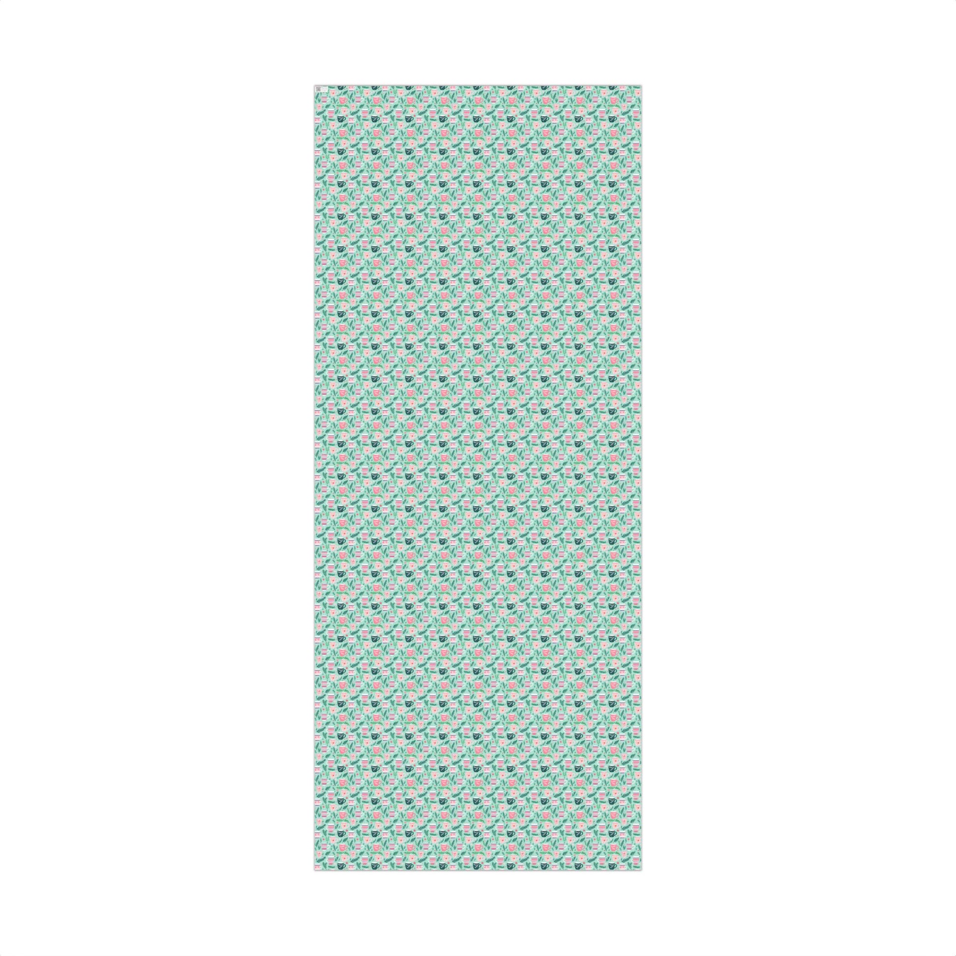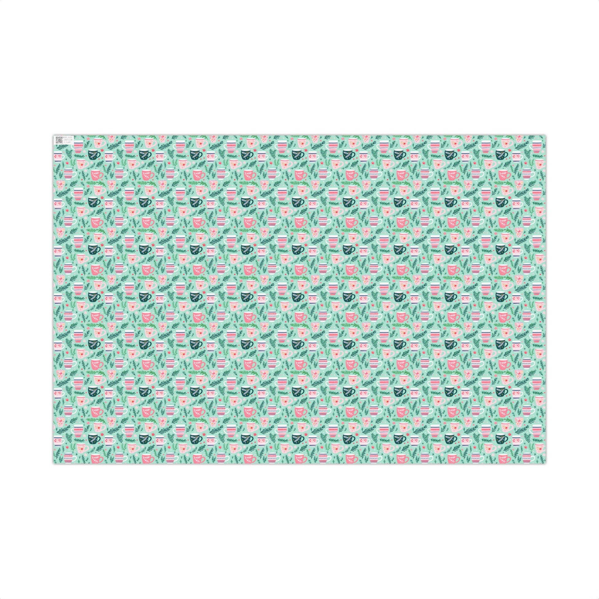 Wrap your holiday gifts in festive charm with this delightful wrapping paper! Featuring cheerful mugs nestled among fir branches on a vibrant mint green backdrop, it brings cozy warmth to any present. The playful blend of pink, red, and green captures the spirit of the season perfectly. Whether you're gifting to coffee lovers, tea enthusiasts, or anyone who adores winter celebrations, this whimsical design adds an extra touch of joy to your holiday giving. Great to mix and match. Make every package as special as what's inside!