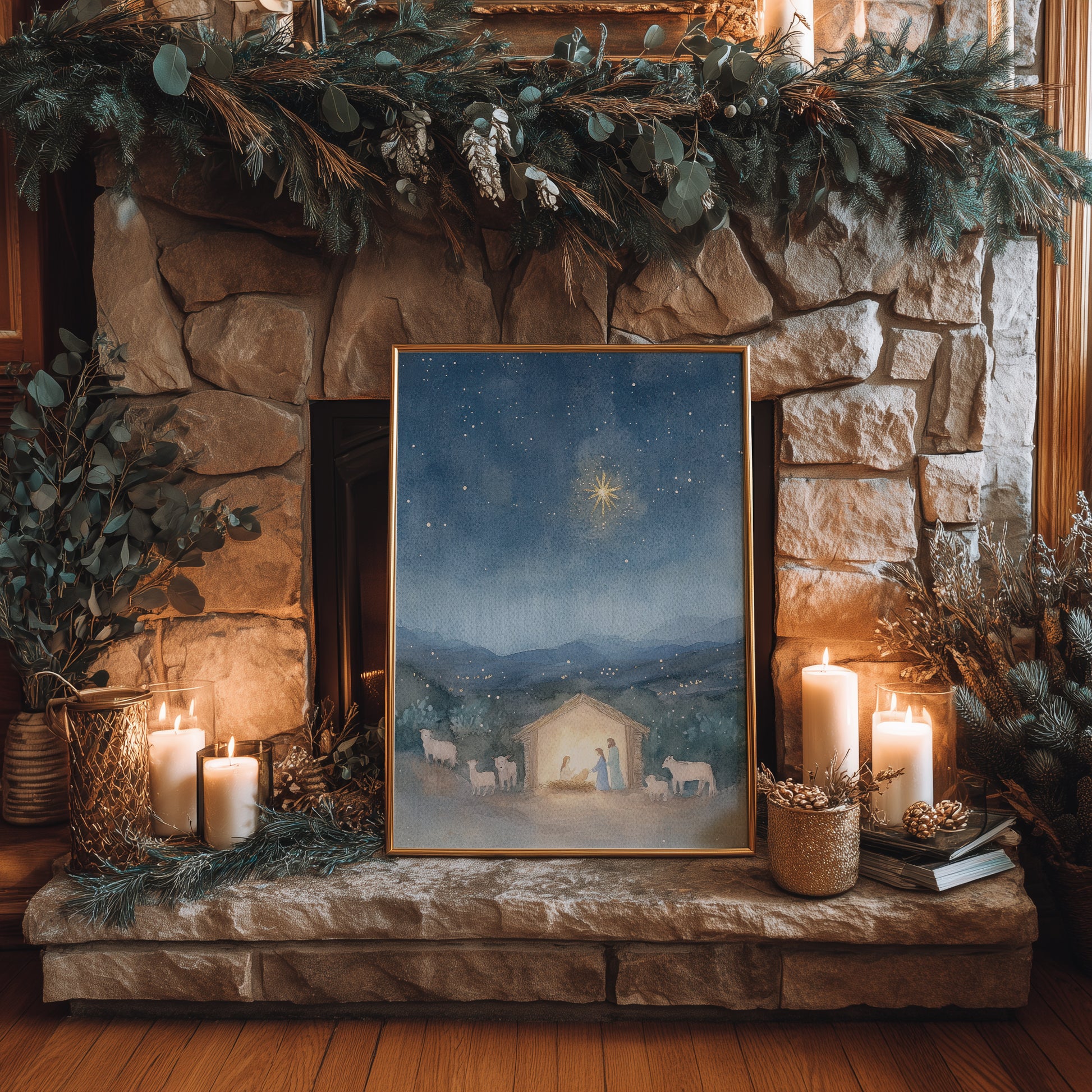 Celebrate the season with this charming Nativity watercolor print featuring a serene manger scene beneath a glowing North Star. Perfect for mixing and matching with other holiday décor or displaying as a standalone statement piece, this matte vertical poster brings warmth and wonder to any room. Whether you're decorating your home or searching for a meaningful gift, this artistic rendition captures the magic of the holidays in soft, beautiful hues. A delightful way to spread seasonal cheer!