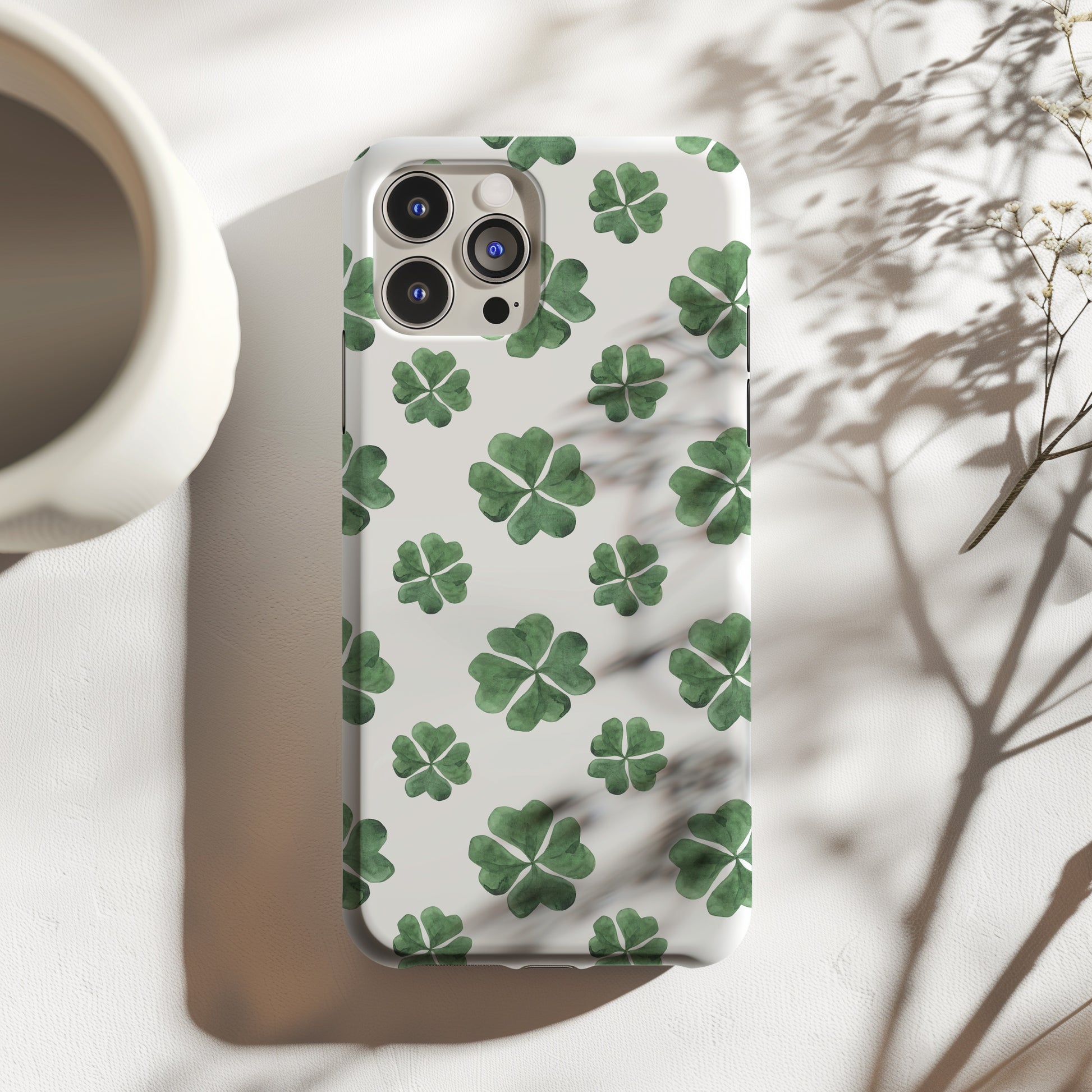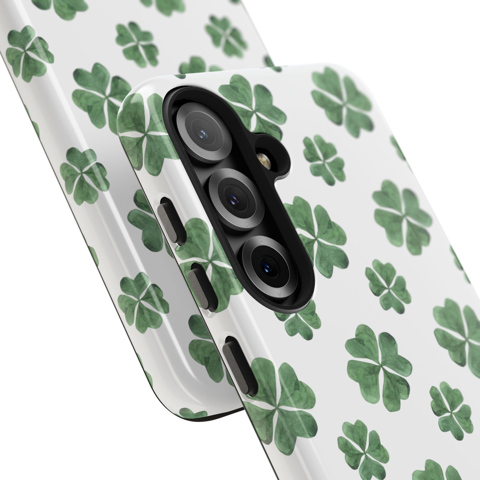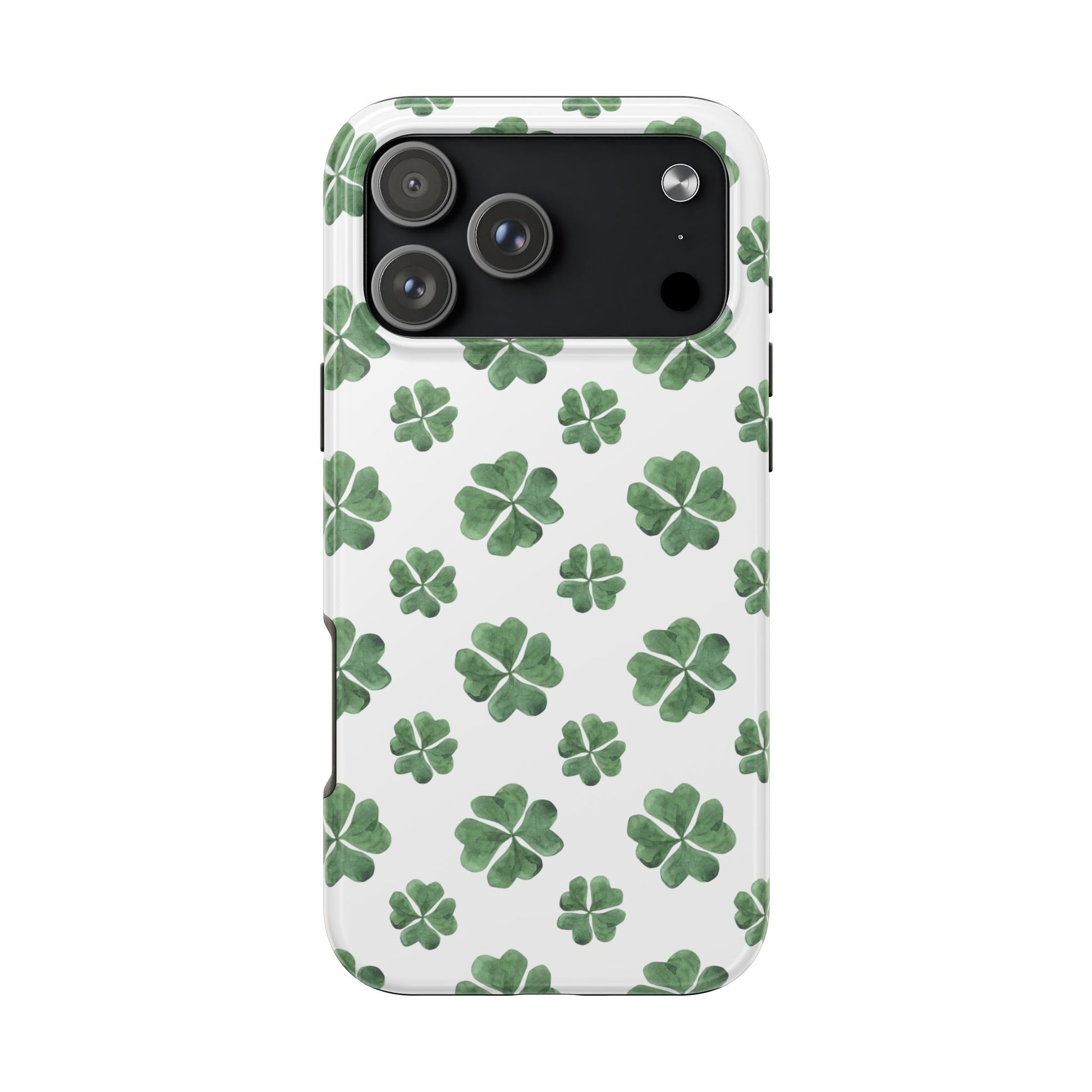 Carry a little luck with you wherever you go! This tough phone case features a whimsical four-leaf clover design in soft green watercolor tones. Perfect for protecting your phone in style, it's ideal whether you're treating yourself or gifting it to someone special. Simple, charming, and just the right amount of good fortune.