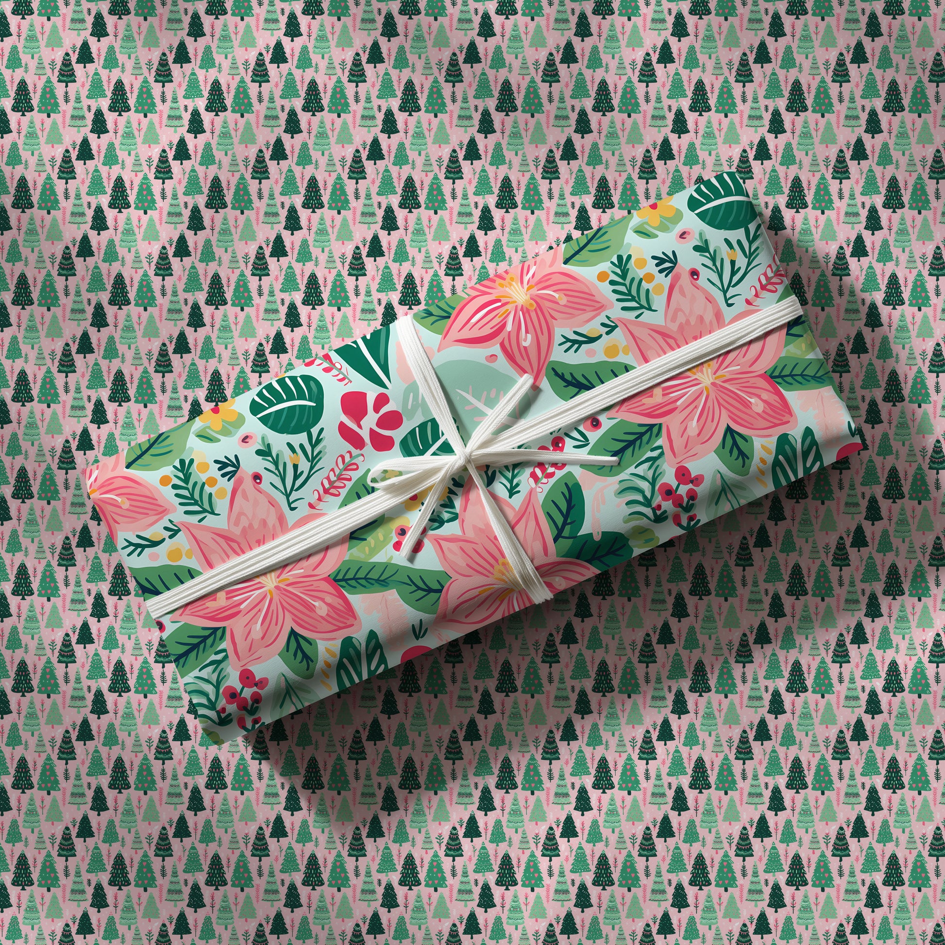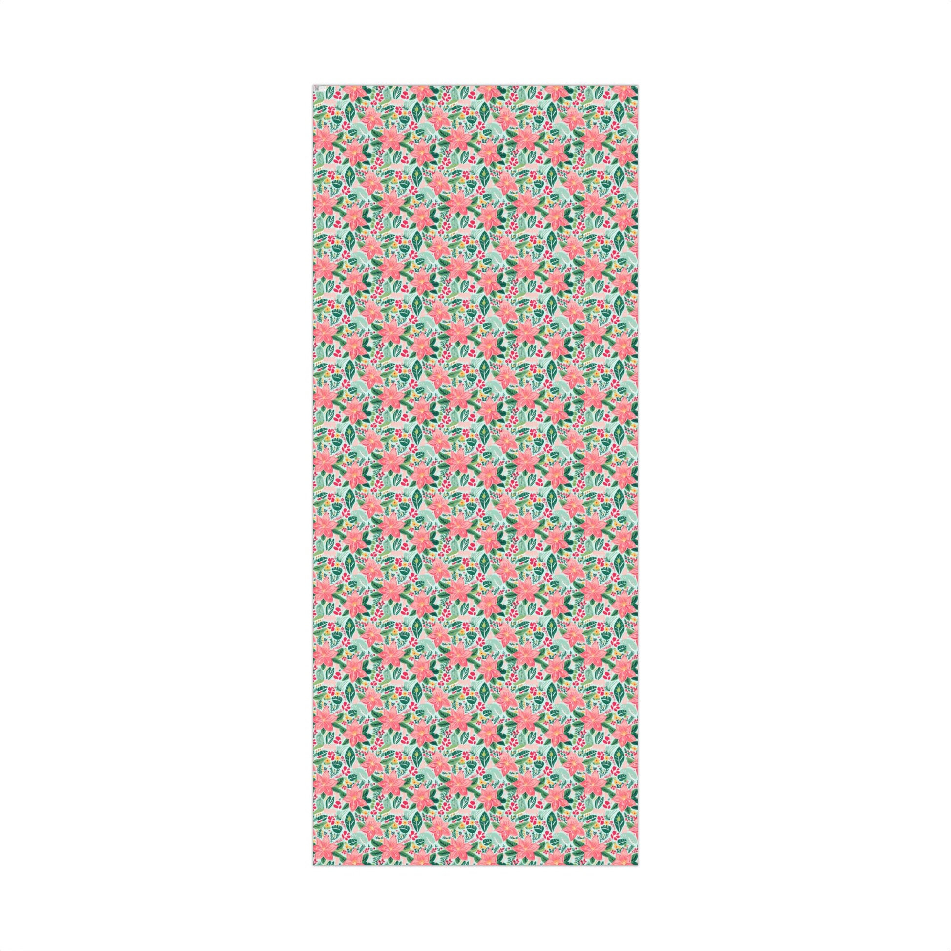 Pink and Green Poinsettia Cozy Christmas Gift Wrapping Paper Sheets