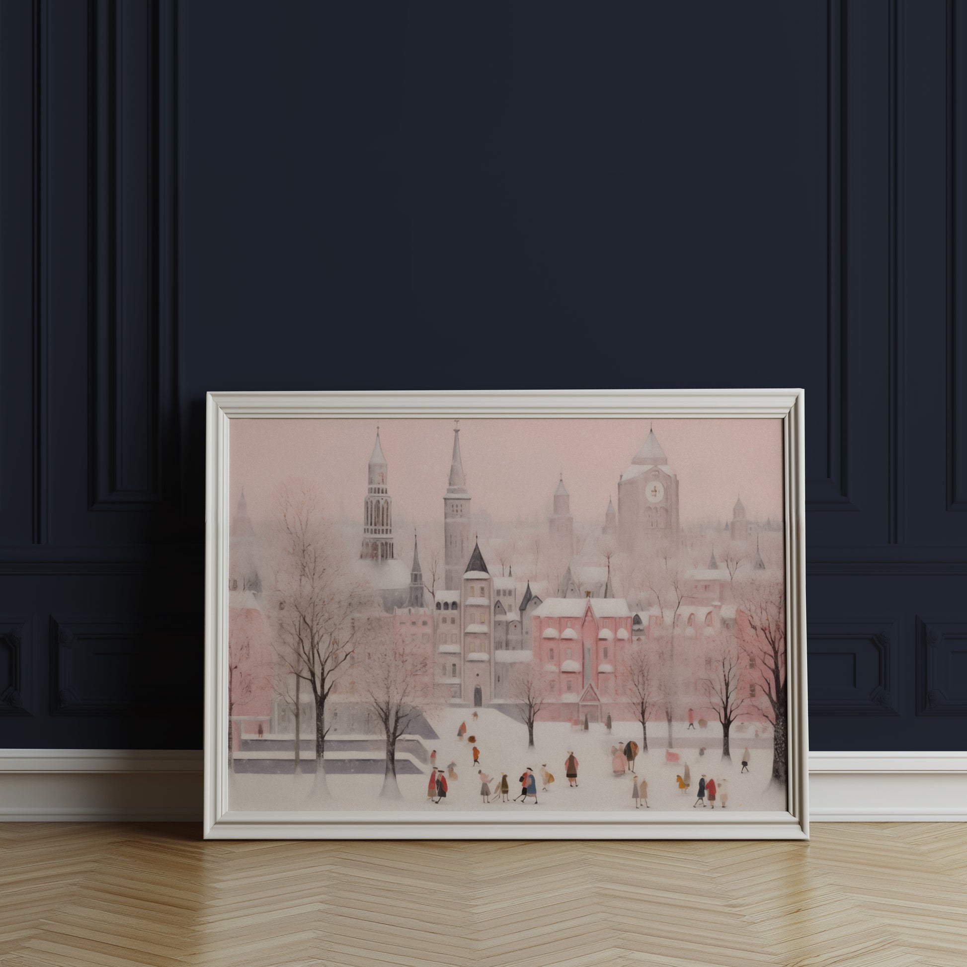 Step into a cozy winter wonderland with this charming Pink Holiday Town poster! Featuring a whimsical snowy cityscape rendered in soft, dreamy pink tones, this landscape-oriented art print captures all the magic of the season. Perfect for spreading holiday cheer throughout your home or gifting to someone special, it brings a playful, festive touch to any space. The matte finish ensures a sophisticated look while the cute aesthetic makes it an instant conversation starter. Whether you're decorating for Christmas or simply love winter vibes year-round, this delightful scene transforms any wall into a portal to a sweet holiday escape.