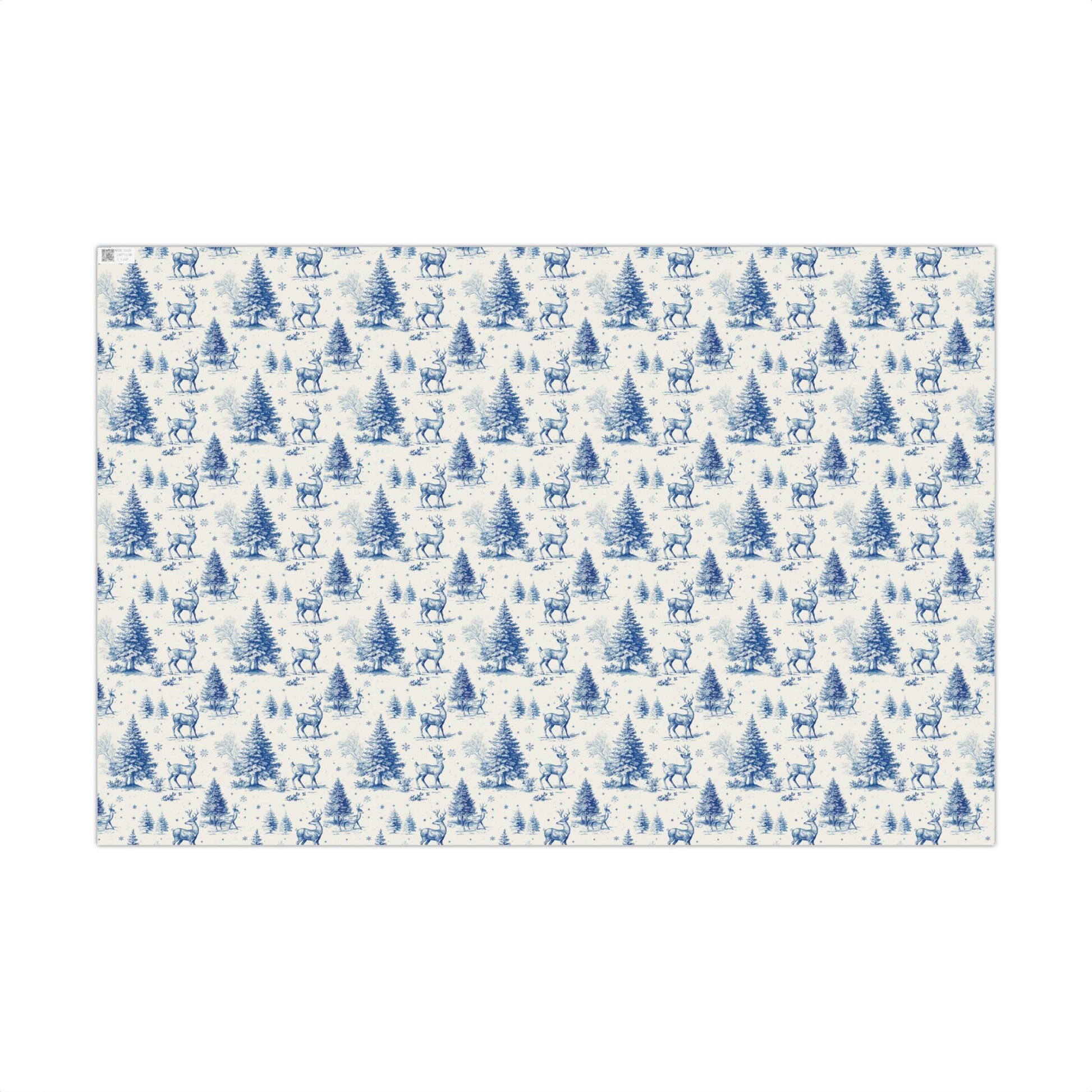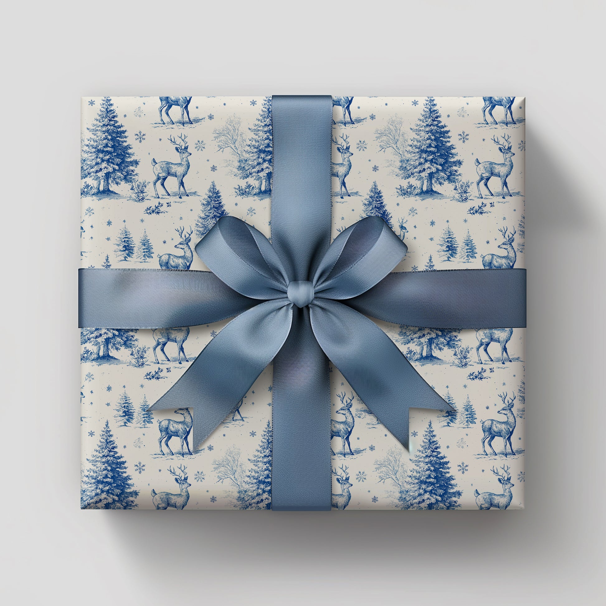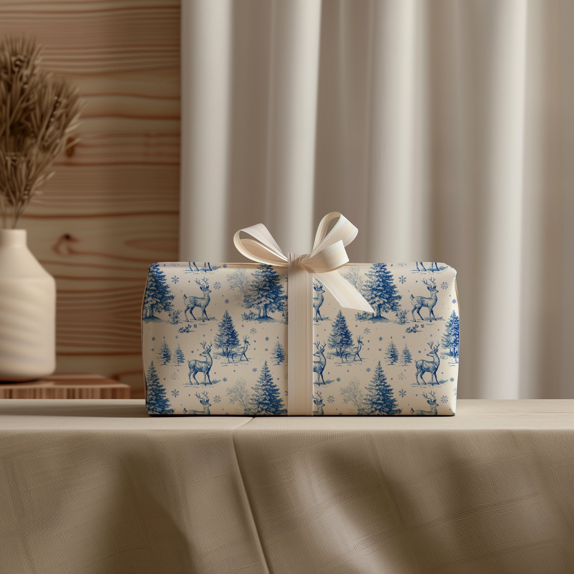 Wrap your winter gifts in timeless charm with this enchanting Toile de Jouy gift wrapping paper. Featuring delicate reindeer and fir trees in a classic blue palette, this vintage-inspired design brings nostalgic elegance to every present. Whether you're celebrating Christmas or any festive occasion, these sheets work beautifully for gifts of all kinds—from treasured presents for little ones to sophisticated surprises for adults. The intricate pattern adds a touch of refined whimsy that transforms ordinary wrapping into something truly special.