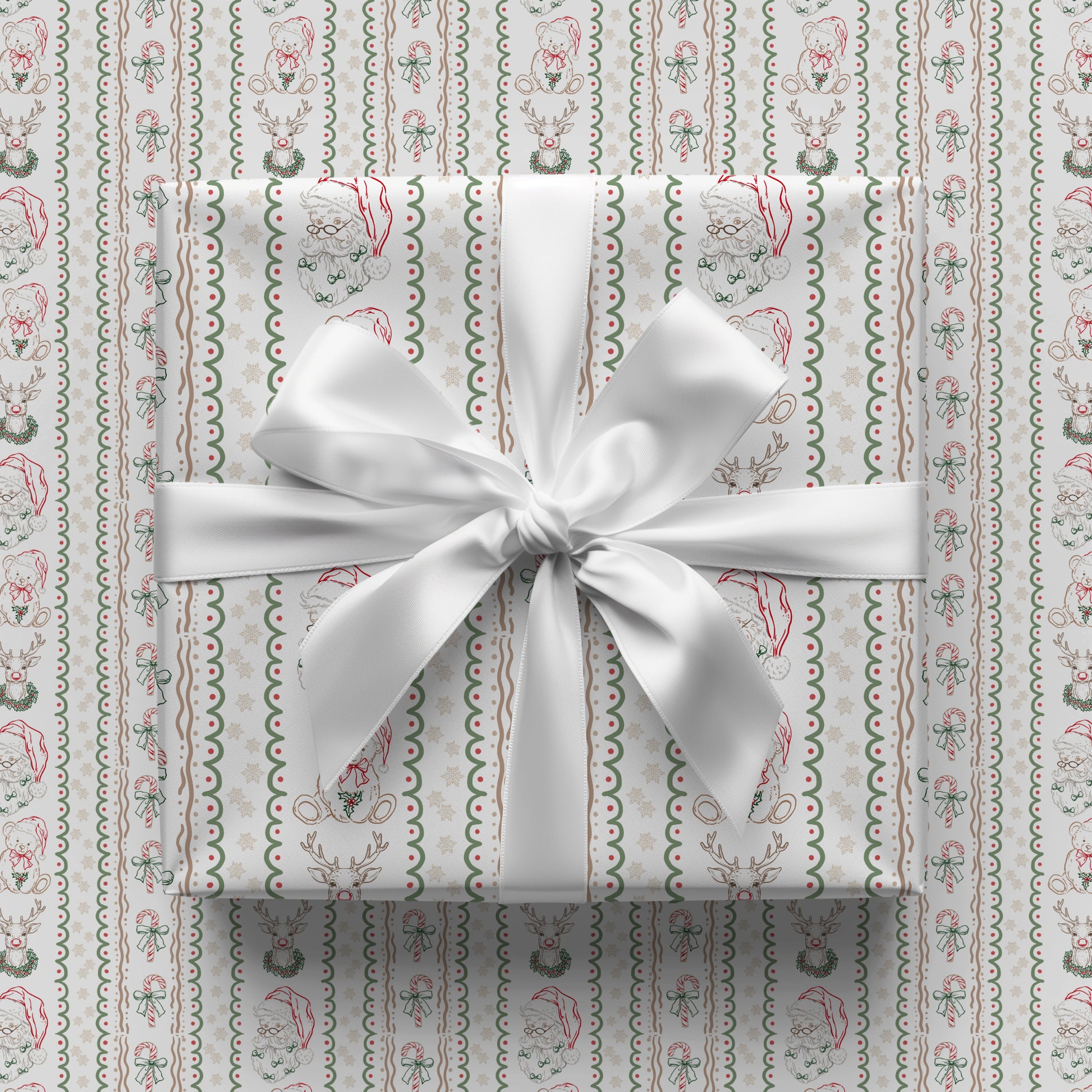 Rustic Christmas Santa and Friends Simple Doodle Gift Wrapping Paper Sheets