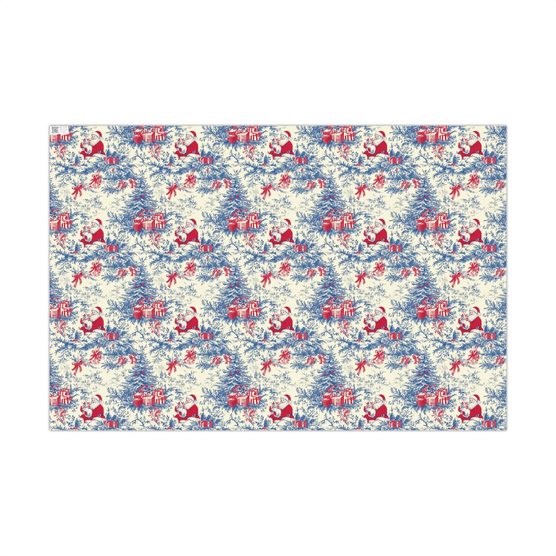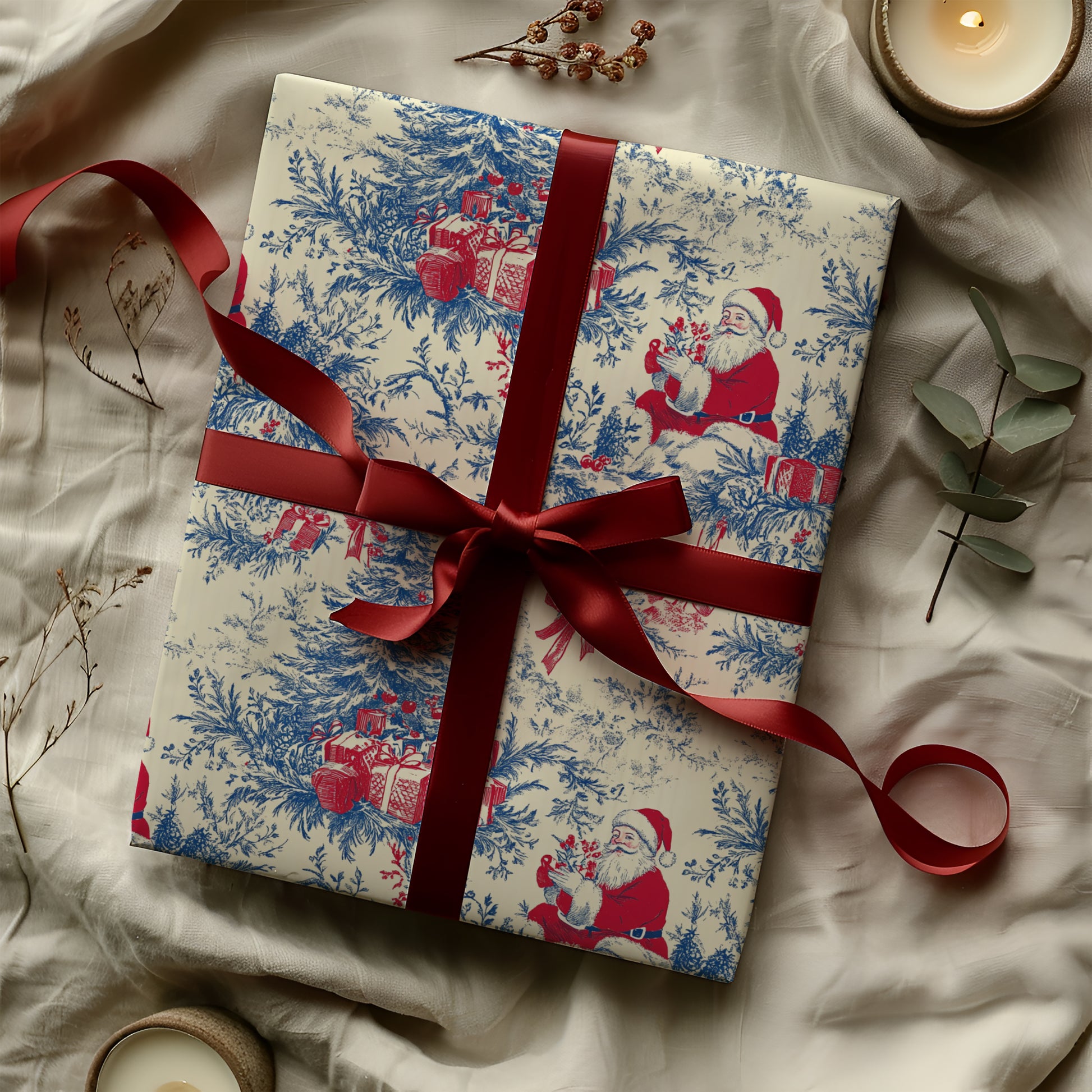 Santa with Tree and Gifts Toile de Jouy Gift Wrapping Paper Sheets