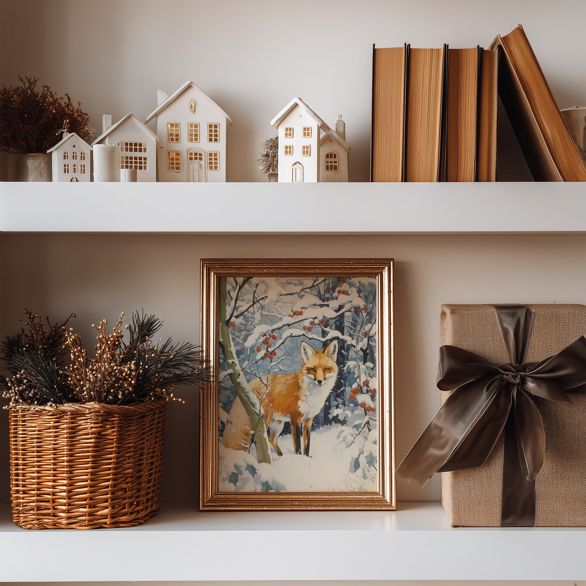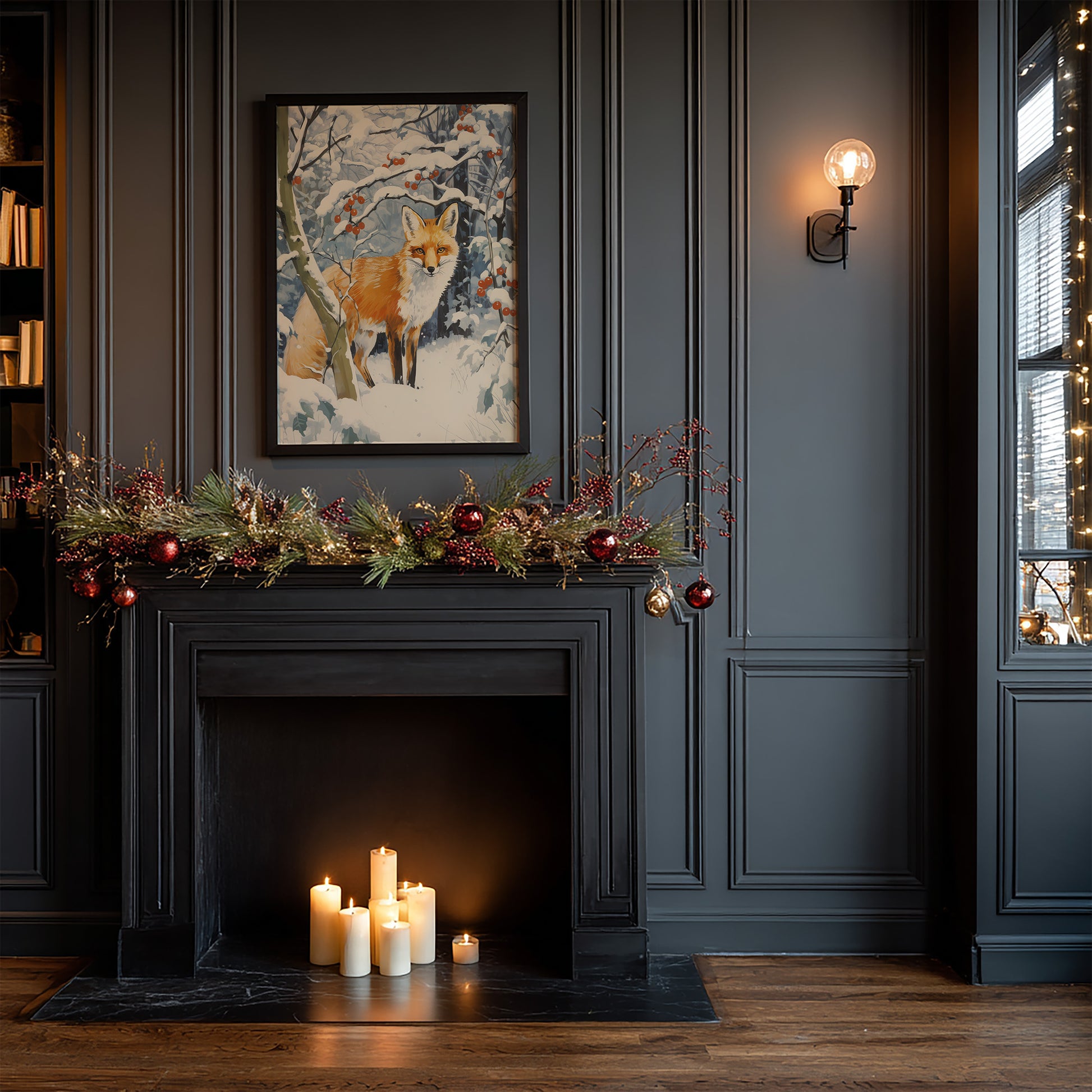 Capture the magic of winter with this charming fox poster art print! Featuring a cozy traditional scene of a snowy fox surrounded by vibrant red berries, this matte vertical print brings warmth and whimsy to any space. Perfect for holiday decorating or year-round winter charm, it works beautifully displayed solo or mixed and matched with other prints. Whether you're treating yourself or searching for the perfect gift, this delightful woodland scene adds a playful touch of seasonal joy to your home.