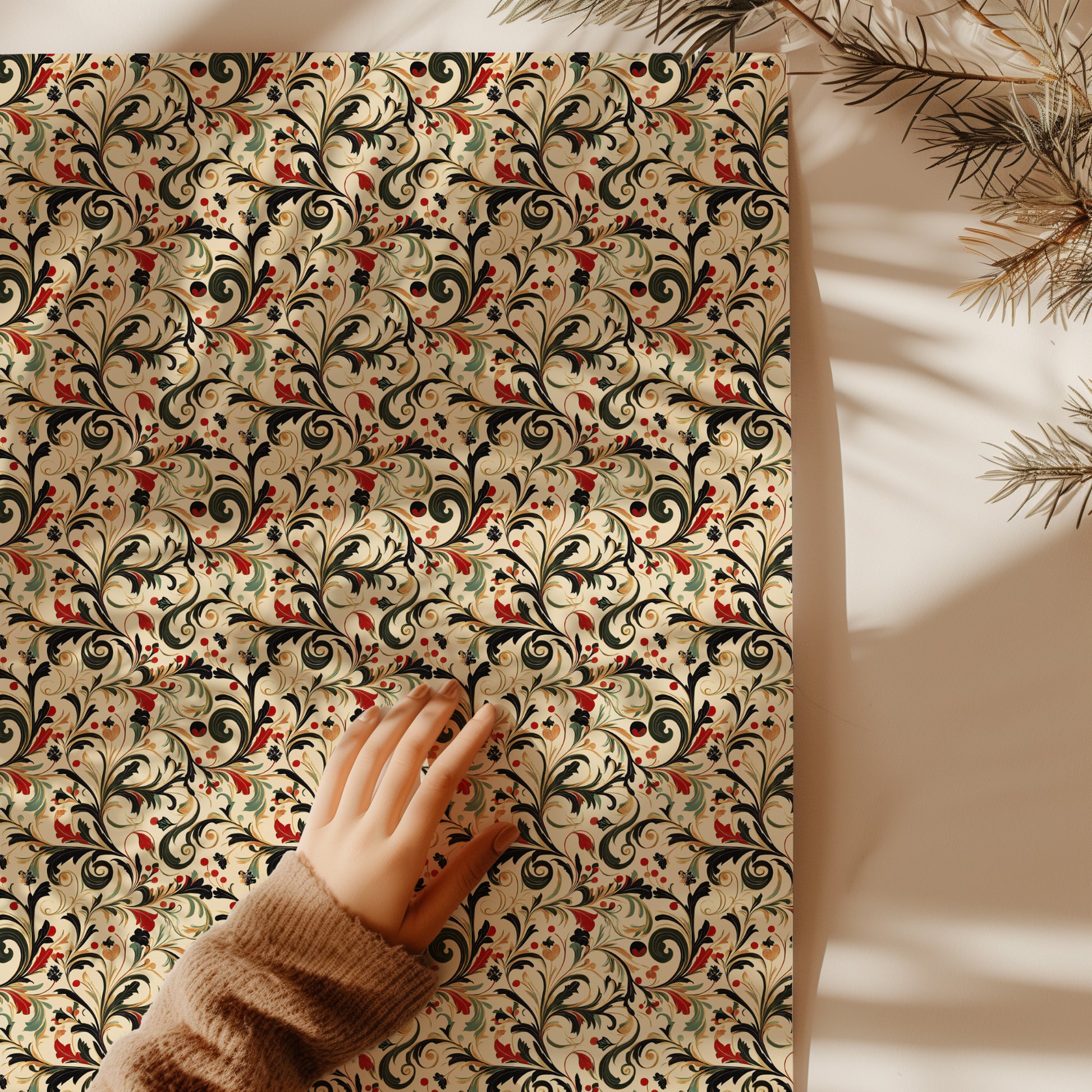 Wrap your gifts in timeless holiday charm with this vintage-inspired Christmas swirl paper. Featuring a stunning mix of rich red, deep green, and gold swirls, each sheet brings an antique elegance to your presents. Perfect for layering and mixing with other designs, this wrapping paper transforms any gift into a treasured keepsake. Whether you're celebrating Christmas, winter gatherings, or any festive occasion, these classic patterns add that nostalgic touch that makes unwrapping feel extra special.