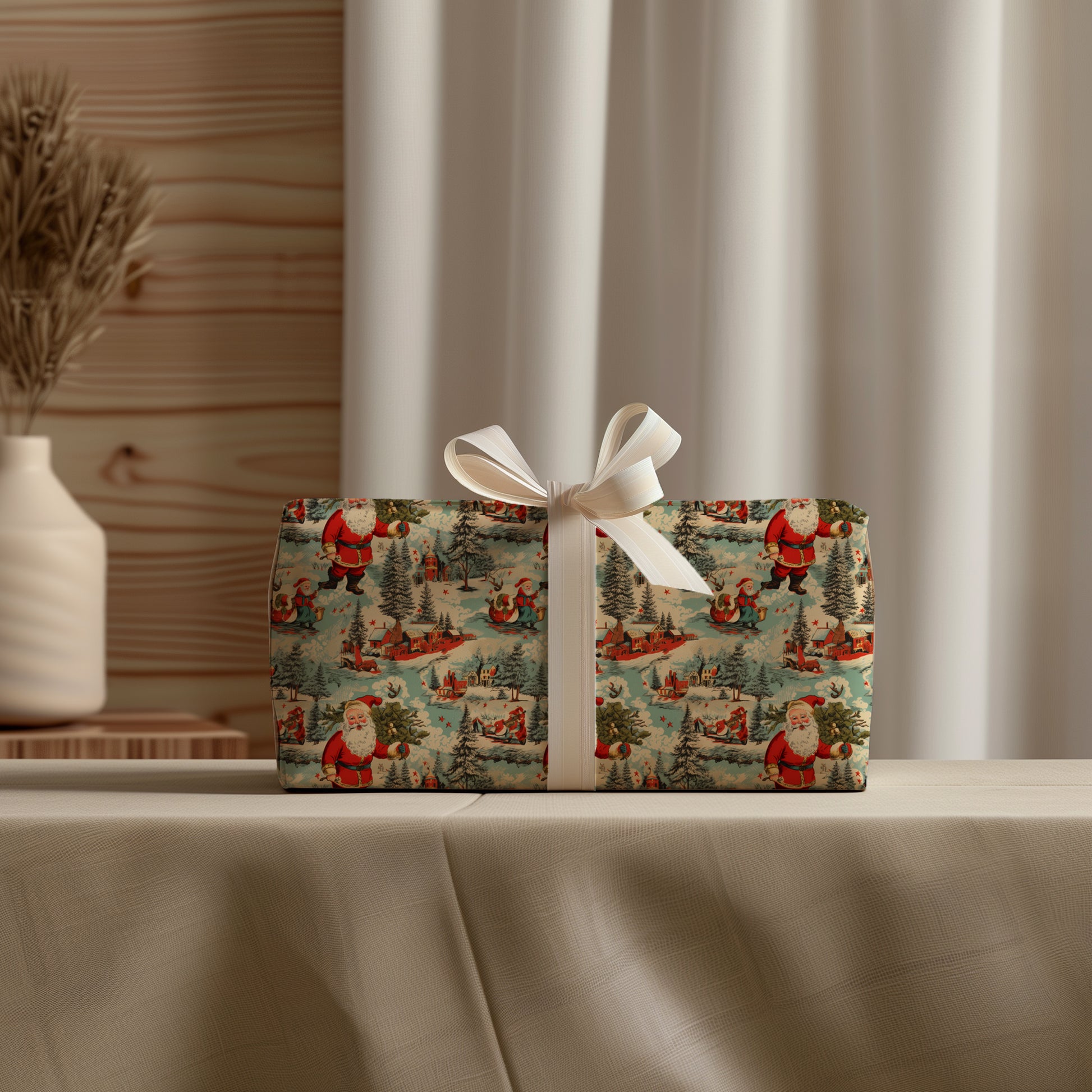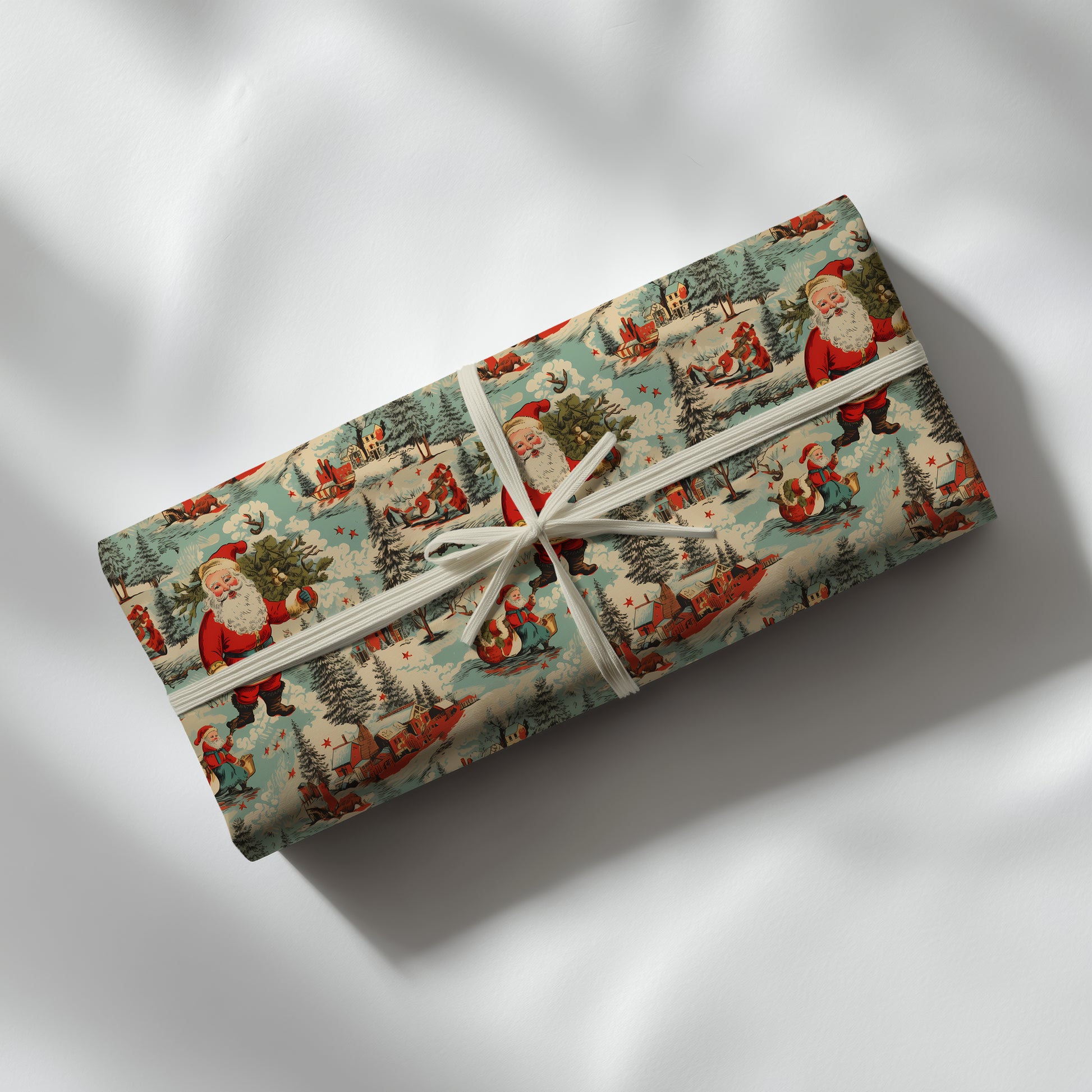 Wrap your gifts in pure holiday magic with this charming vintage Santa wrapping paper! Featuring a nostalgic winter wonderland scene straight from the golden age of Christmas, it brings that beloved 50s aesthetic to your present-giving. Perfect for anyone who treasures retro charm, this throwback design delights both kids and adults alike. Mix and match with other festive patterns to create a uniquely curated gift presentation that tells a story of simpler, merrier times. Transform ordinary packages into treasured keepsakes with every wrap.