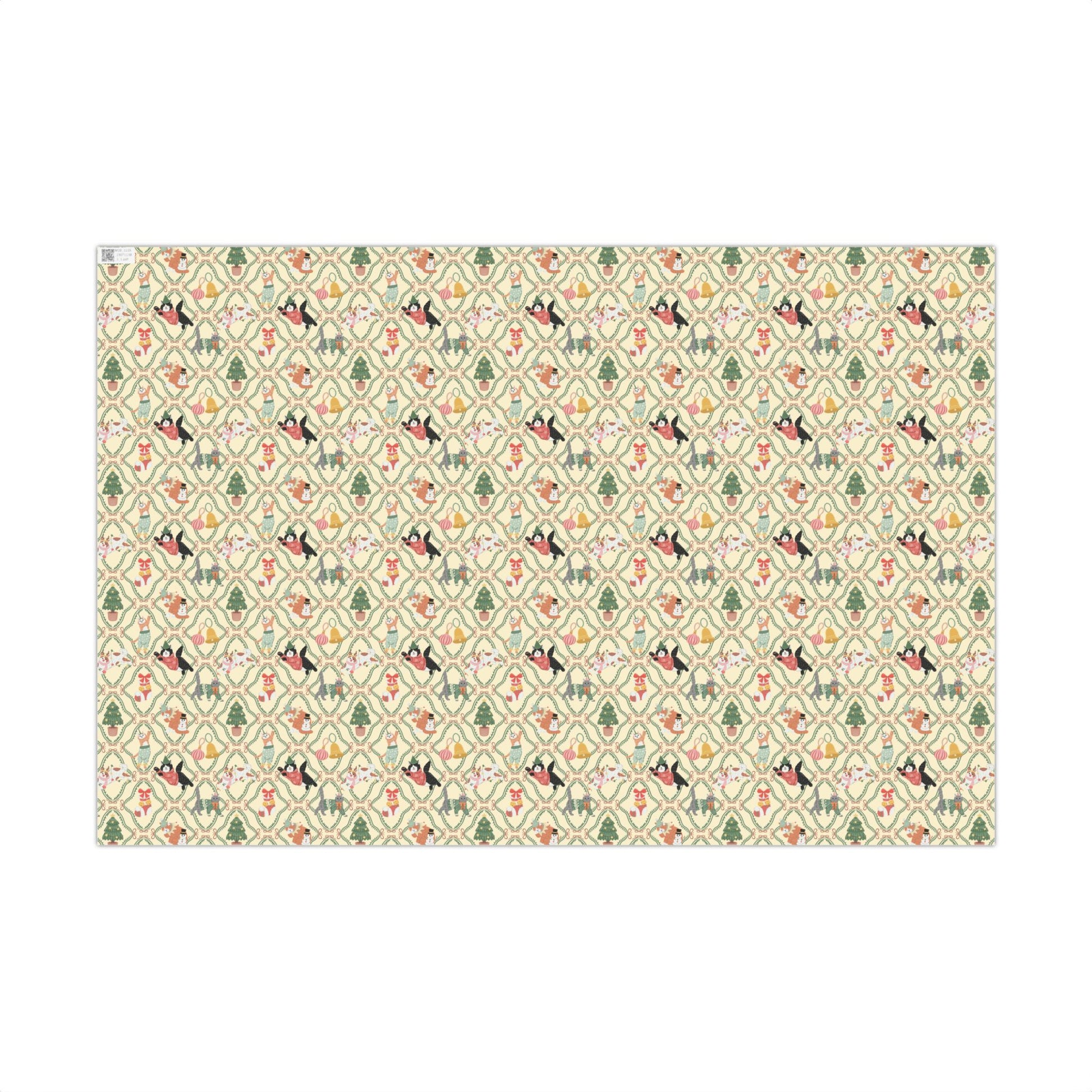 Whimsical Christmas Cats Pastel Gift Wrapping Paper Sheets