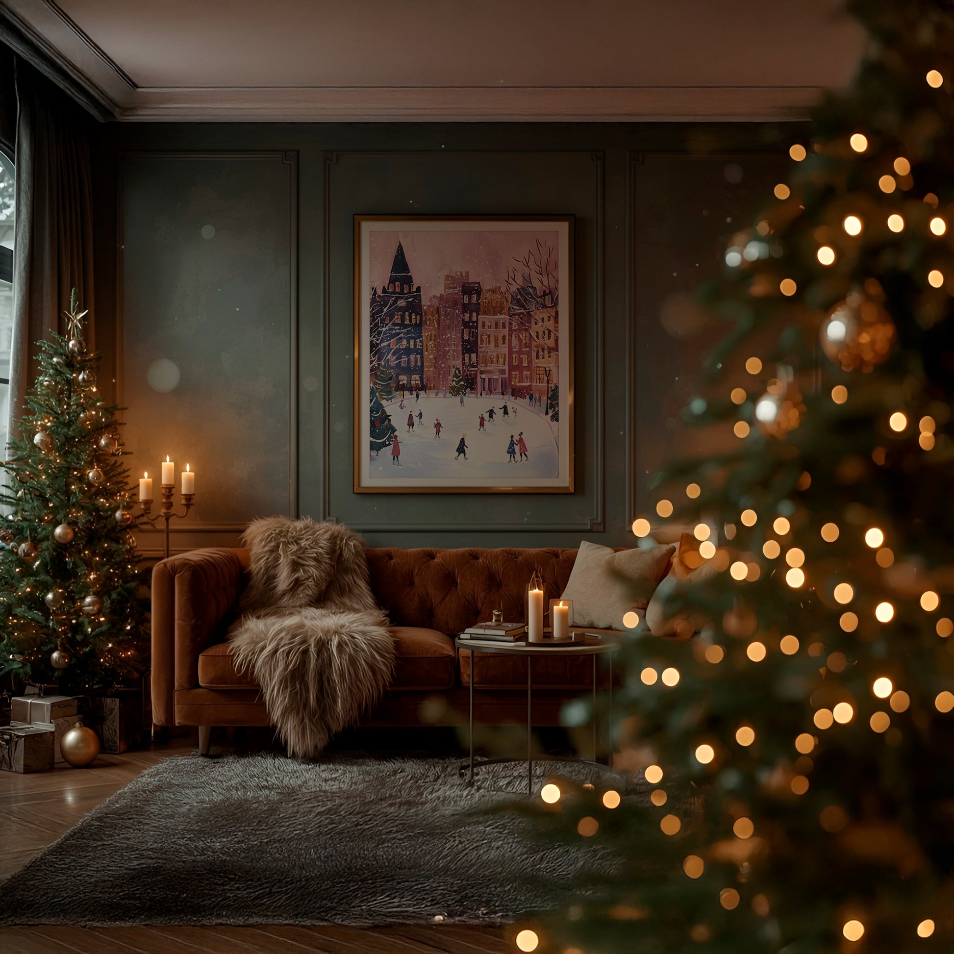 Step into a winter wonderland with this charming ice skating scene poster! Featuring a whimsical cityscape dusted with snow, this matte art print captures the magic of the season with delightful detail and cozy charm. Whether you're decorating for the holidays, creating a winter-themed gallery wall, or searching for the perfect gift, this vertical print brings festive warmth to any space. Display it solo for maximum impact or mix and match with other prints to craft your own personalized collection. A delightful way to celebrate the season in your home!