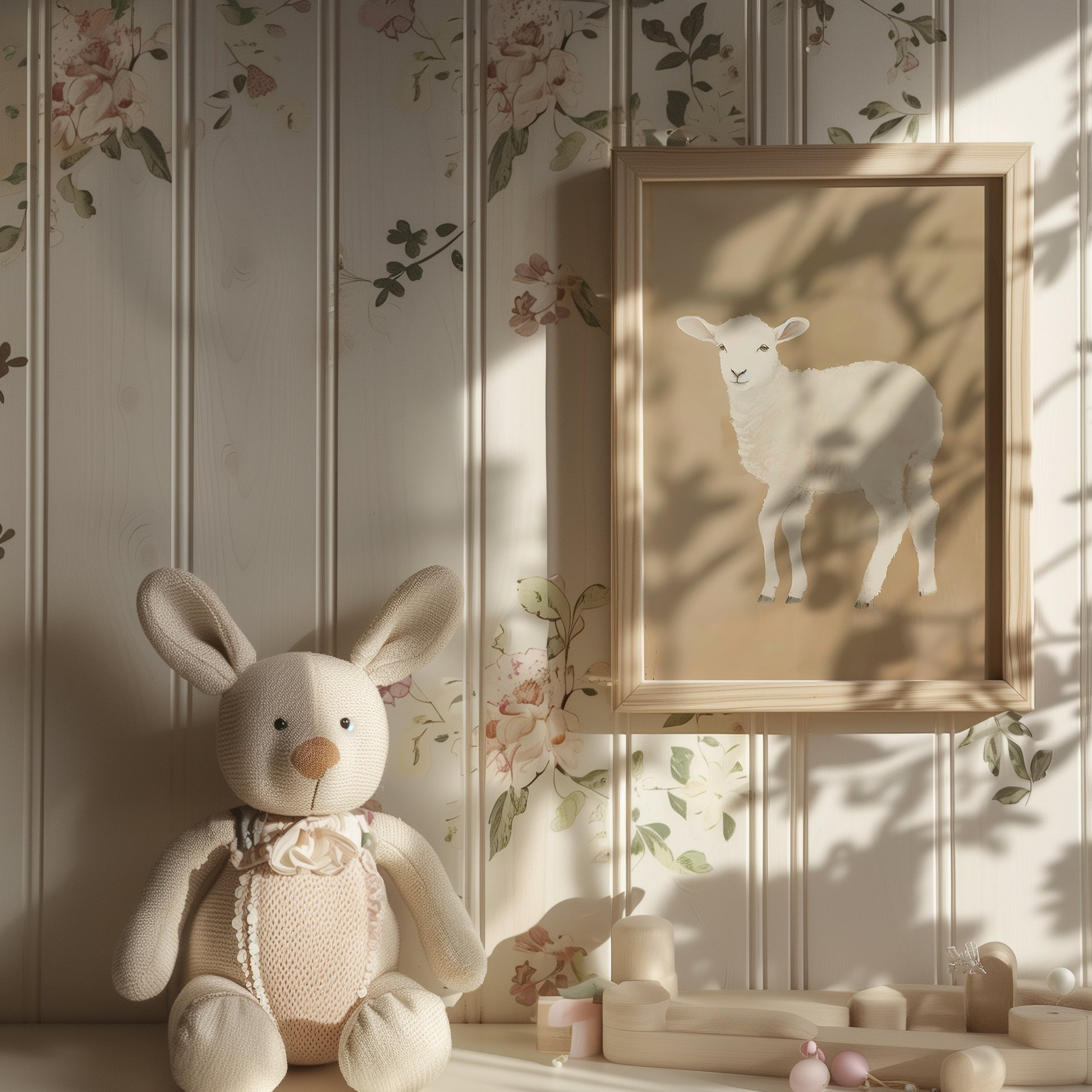 The perfect addition to any little one's space—a charming baby lamb illustration that brings gentle whimsy to nursery walls. This matte vertical print features soft, neutral tones that complement any décor style, from boho-inspired rooms to modern minimalist spaces. Whether you're decorating a nursery, creating a gallery wall, or searching for a thoughtful baby shower gift, this adorable sheep artwork adds warmth and personality without overwhelming the room. Frame it solo or pair it with coordinating prints for a curated look that grows with your child.