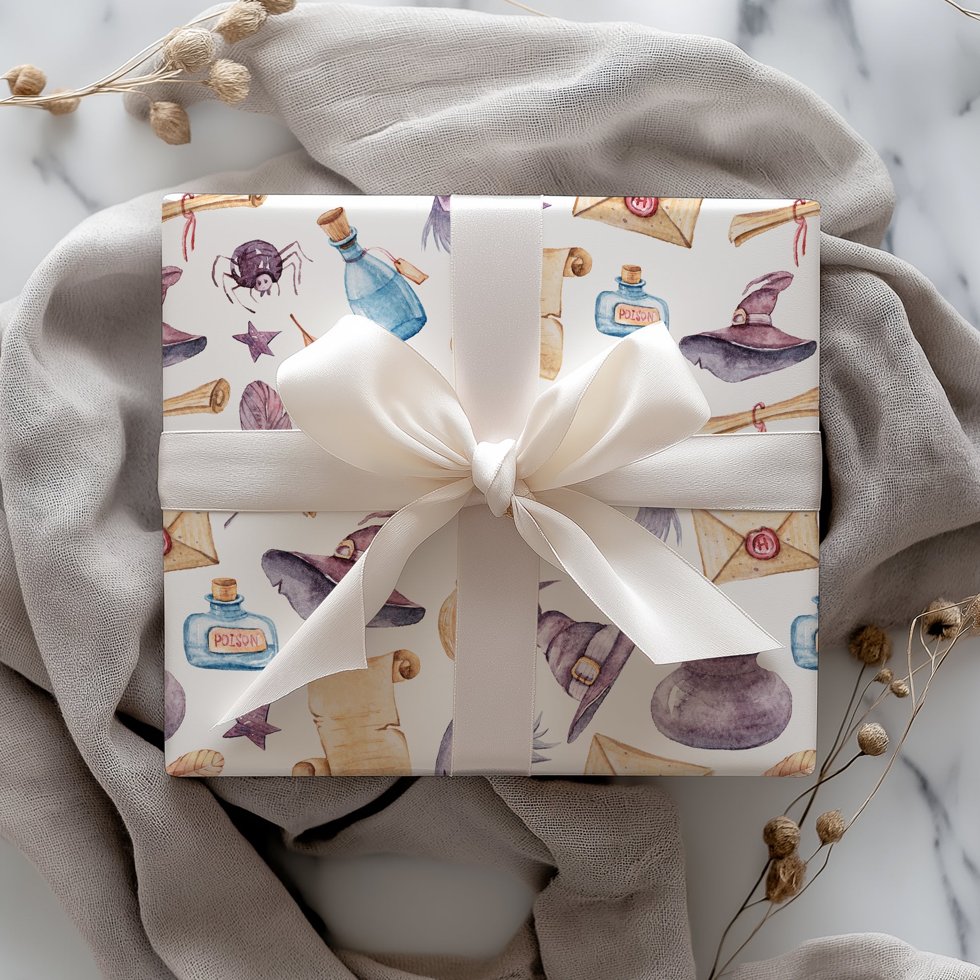 Wrap your gifts in pure magic with this enchanting wizarding-themed gift wrapping paper! Featuring whimsical witches and wizards in charming designs, it's the perfect choice for spooky season celebrations or delighting any magical enthusiast. Each sheet brings a playful touch of wonder to your presents, transforming ordinary wrapping into something truly spellbinding. Ideal for Halloween parties, wizard-themed events, or surprising the witch and wizard lovers on your gift list.