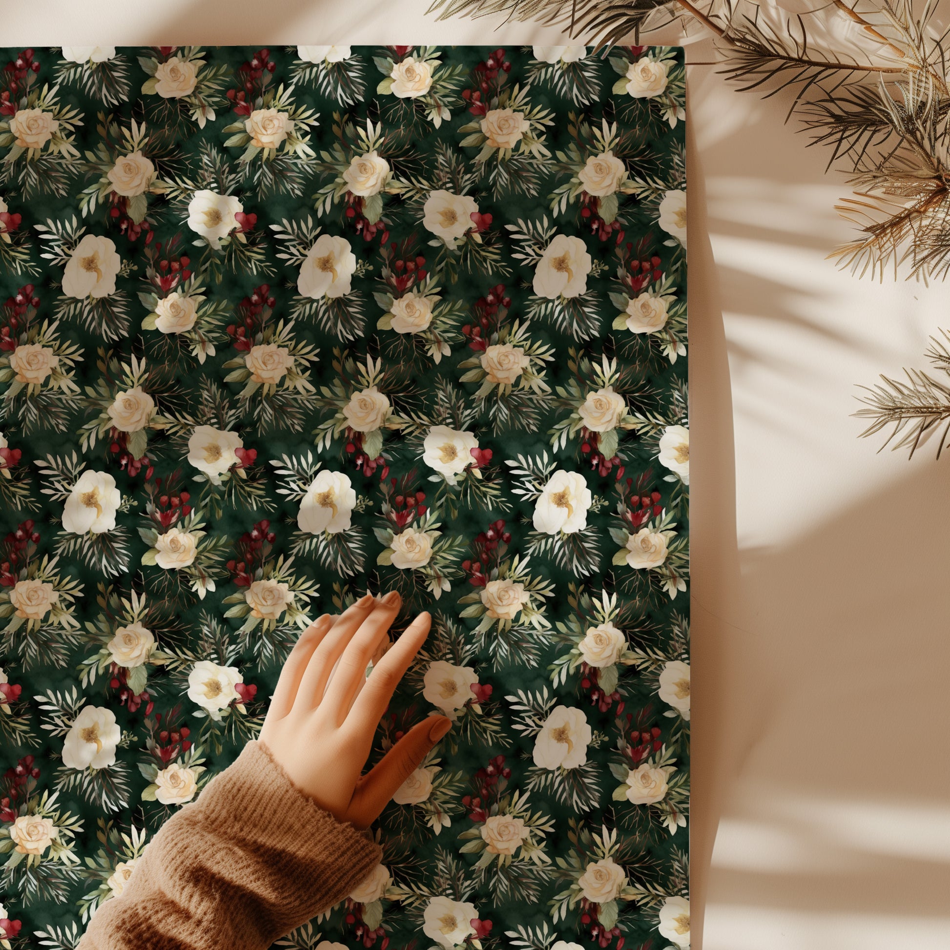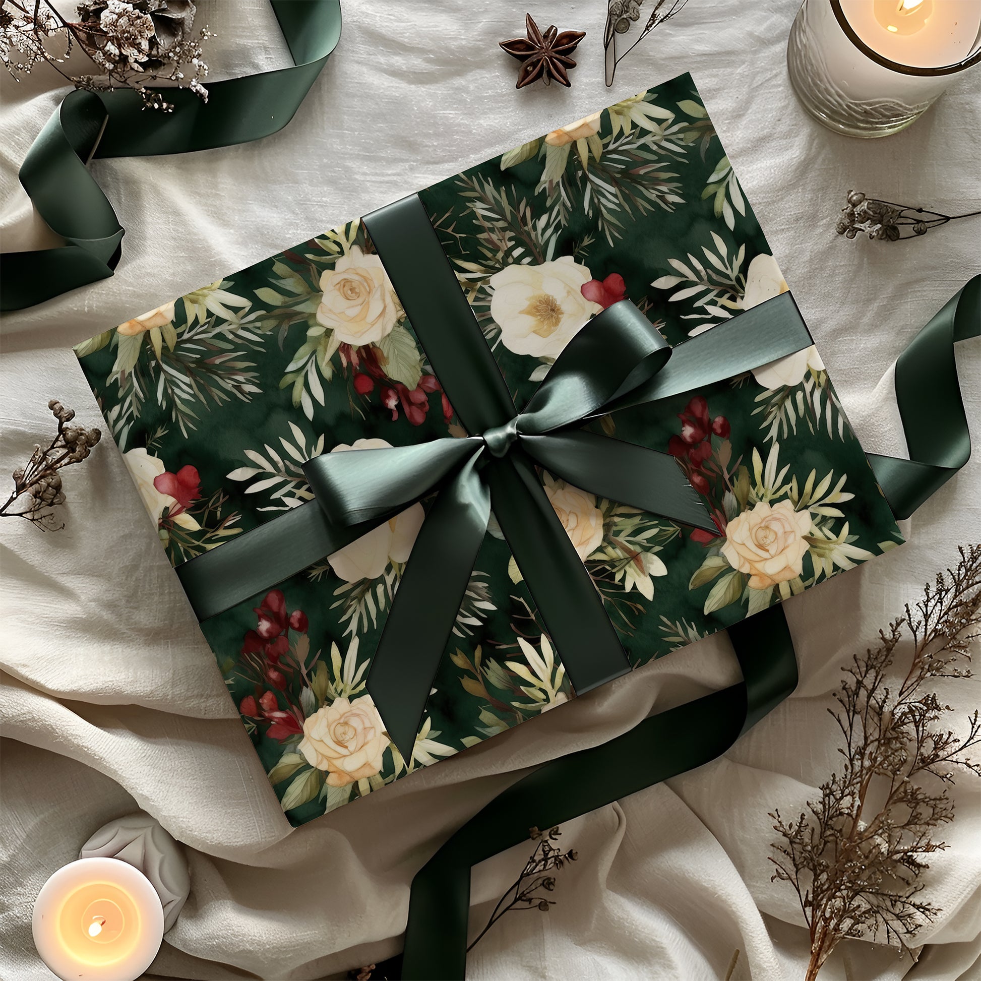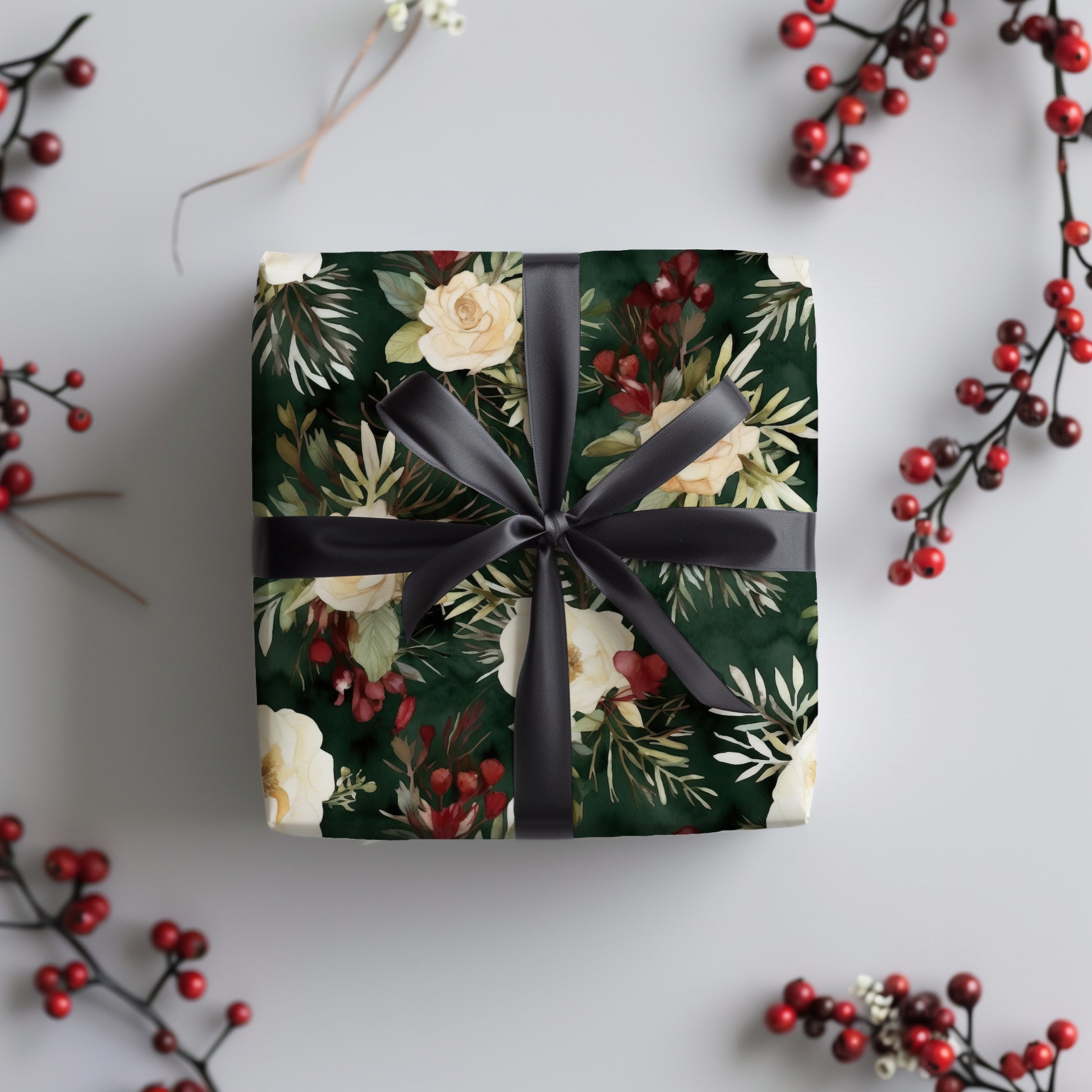 Wrap your gifts in winter wonderland style! This elegant holiday wrapping paper features delicate winter flowers and vibrant red berries against a classic backdrop—perfect for Christmas morning or any festive occasion. Mix and match with coordinating designs to create a personalized gift presentation that's as beautiful as what's inside. Ideal for adding that special touch to your seasonal gifting.
